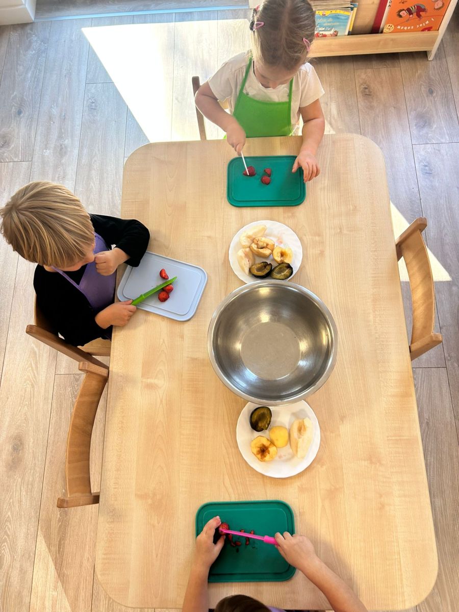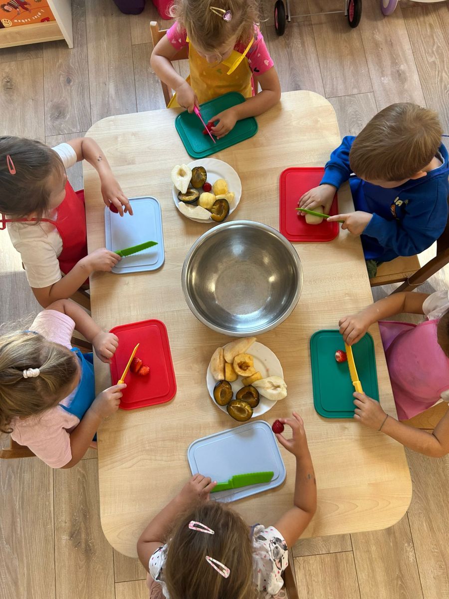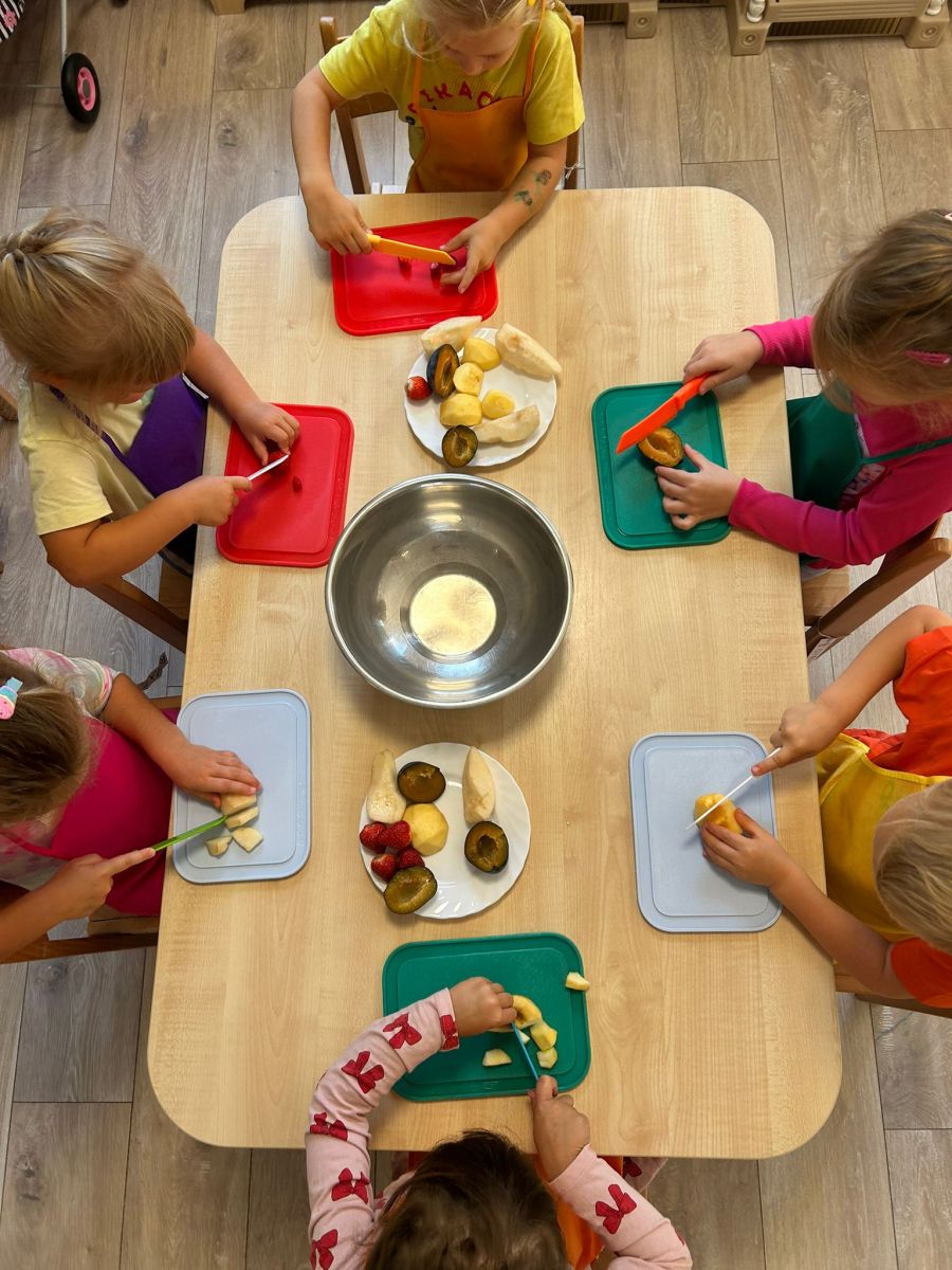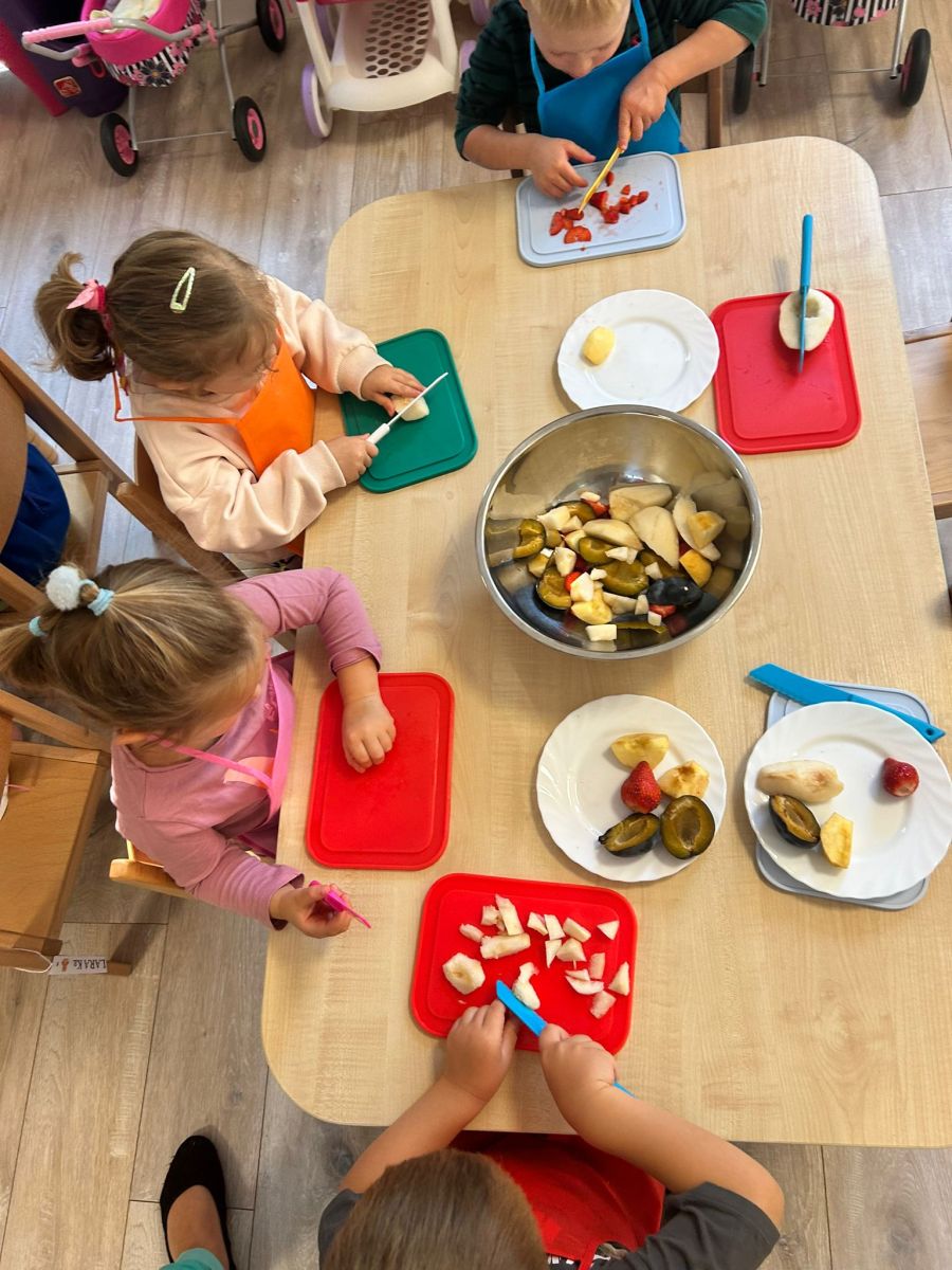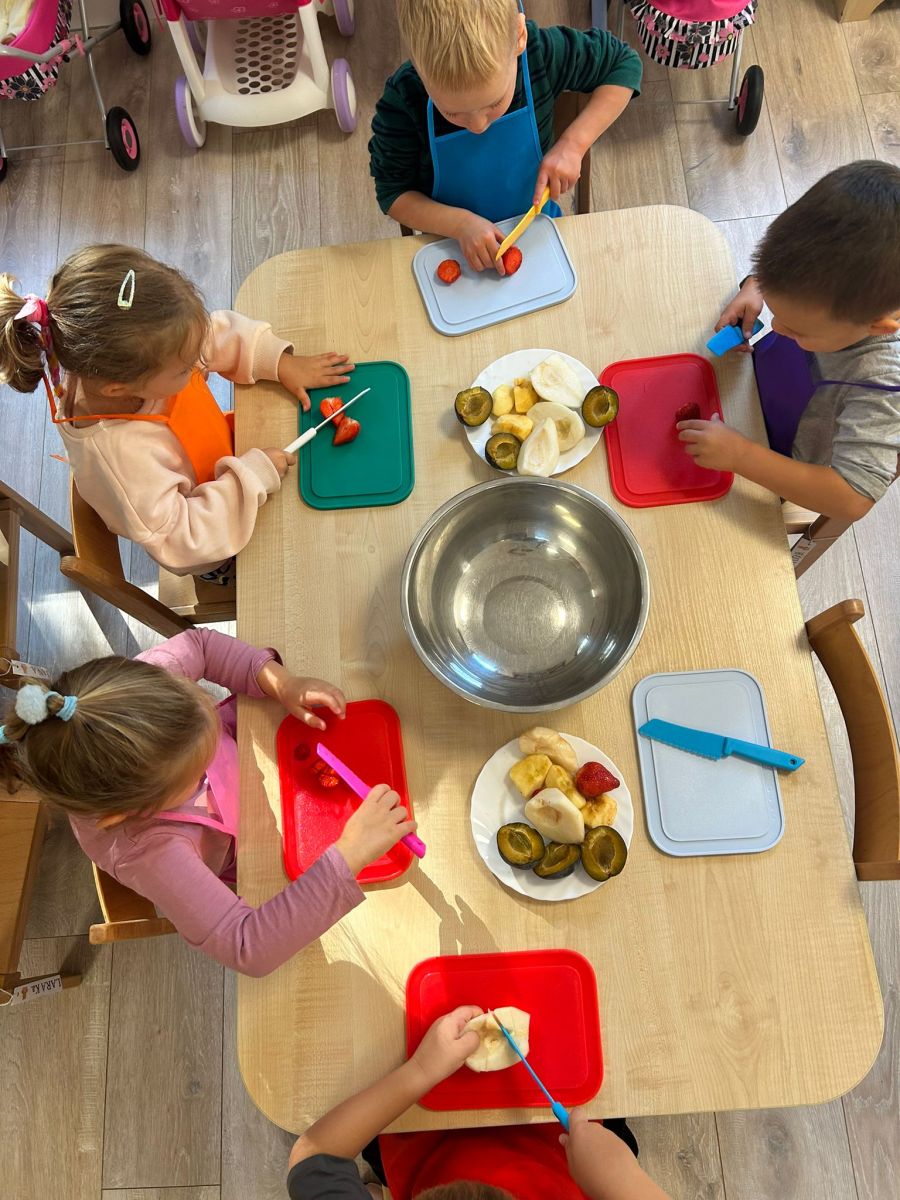 Misie robią sałatkę owocową