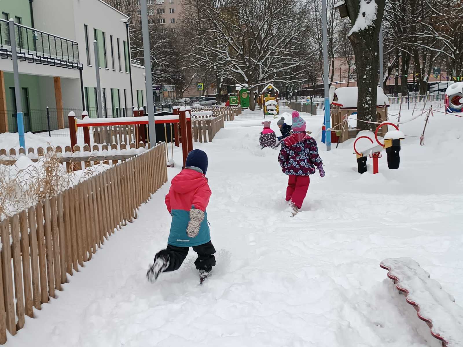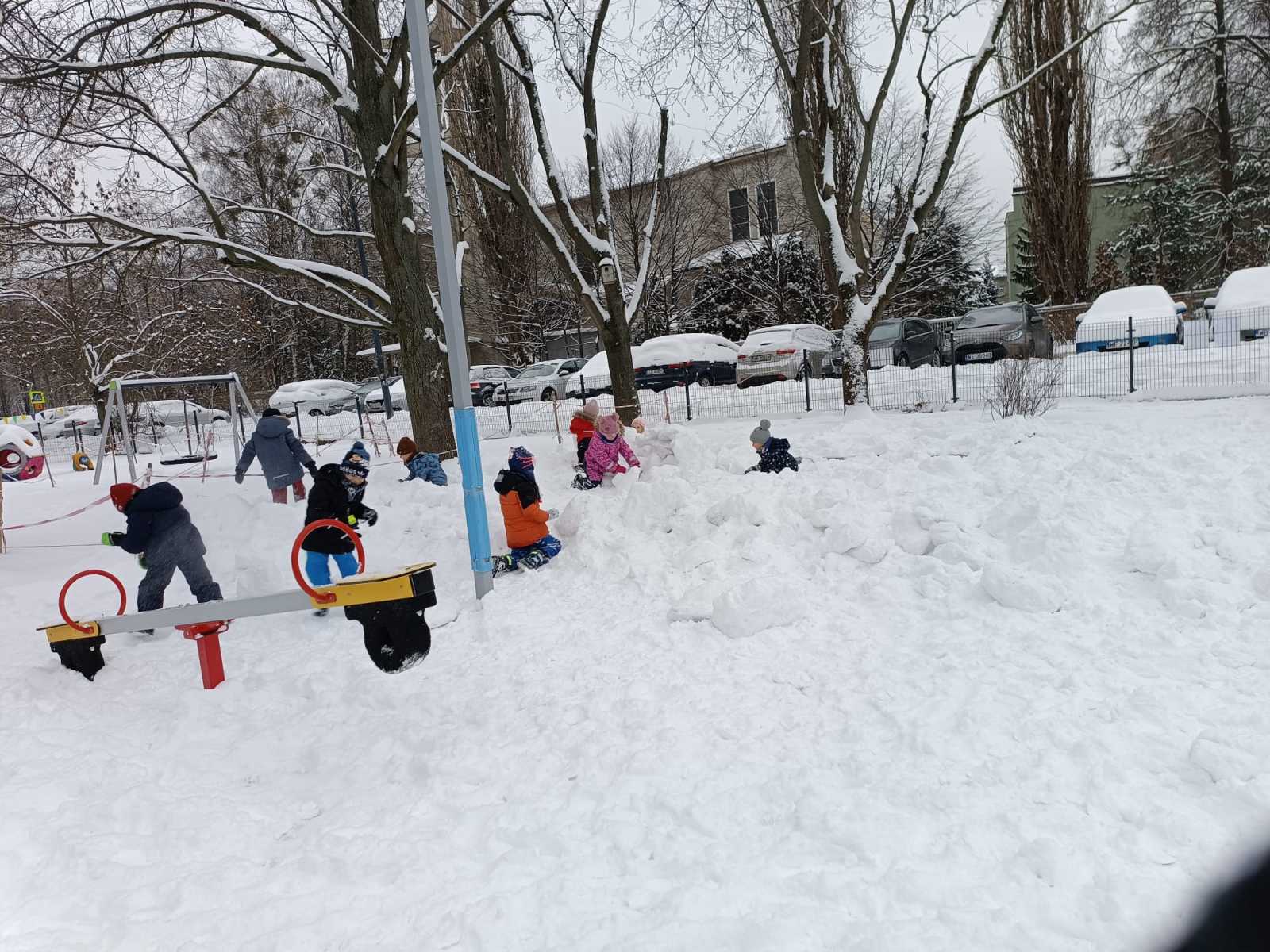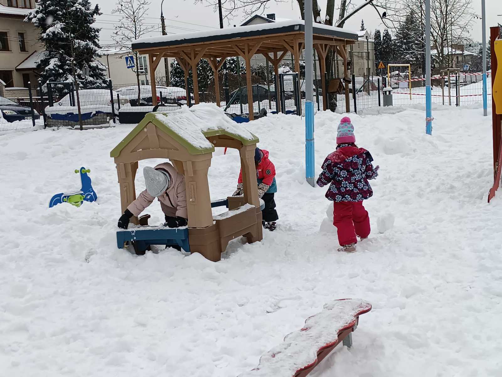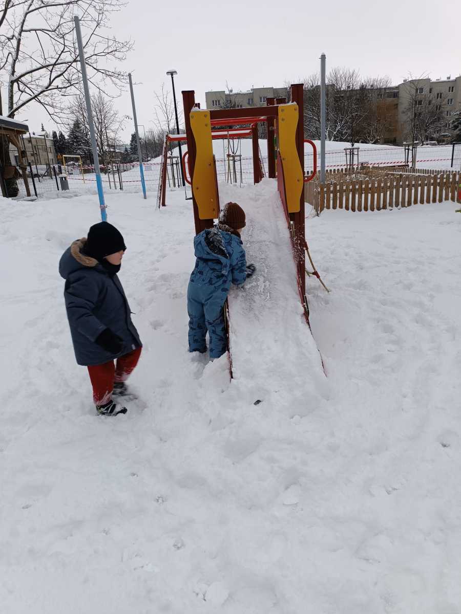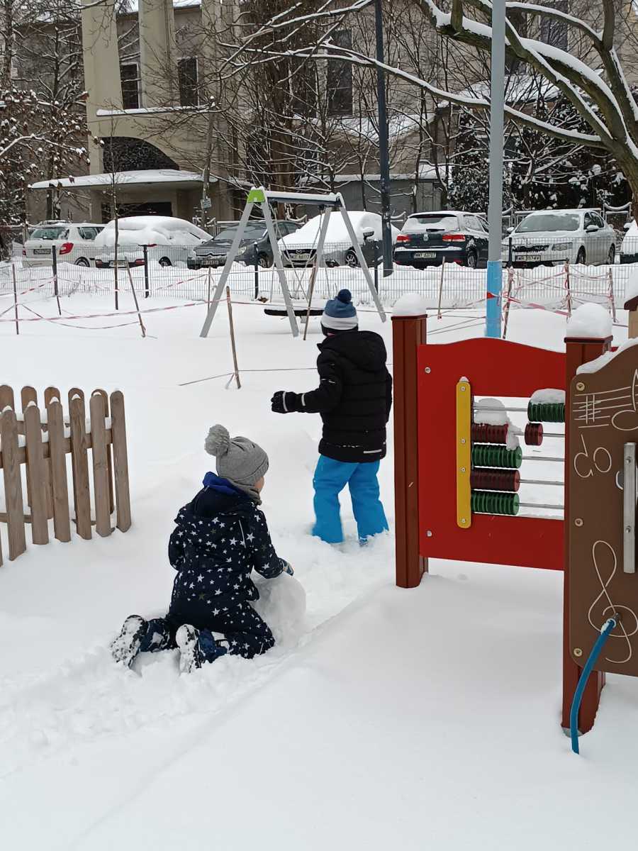 Zimowe zabawy Myszek w ogrodzie